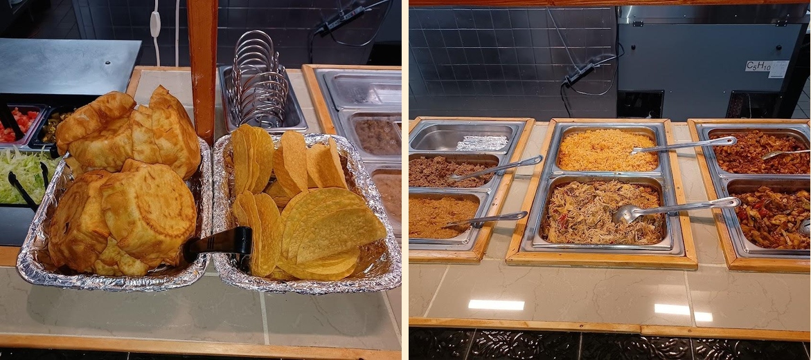 "Tex-mex flare taco and salad bar. Id recommend this restaurant especially if you don't want spicy but some flavor. Very affordable Friday night we paid $13.50 for each adult. Very very reasonable. Beef steak shrimp pork salad rice beans salsa...worth the money and visit"